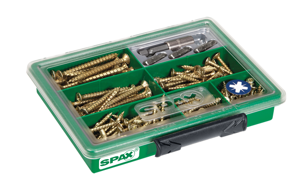 SPAX Küçük Vida Çantası, 7 çeşit vida ve vidalama ucu ile (199 Adet), Havşa Başlı, Yıldız Z, YELLOX Kaplama - 4000001991129