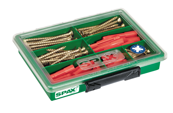 SPAX Küçük Vida Çantası, 4 çeşit vida ve dübel ile (130 Adet), Havşa Başlı, Yıldız Z, YELLOX Kaplama - 4000001991079